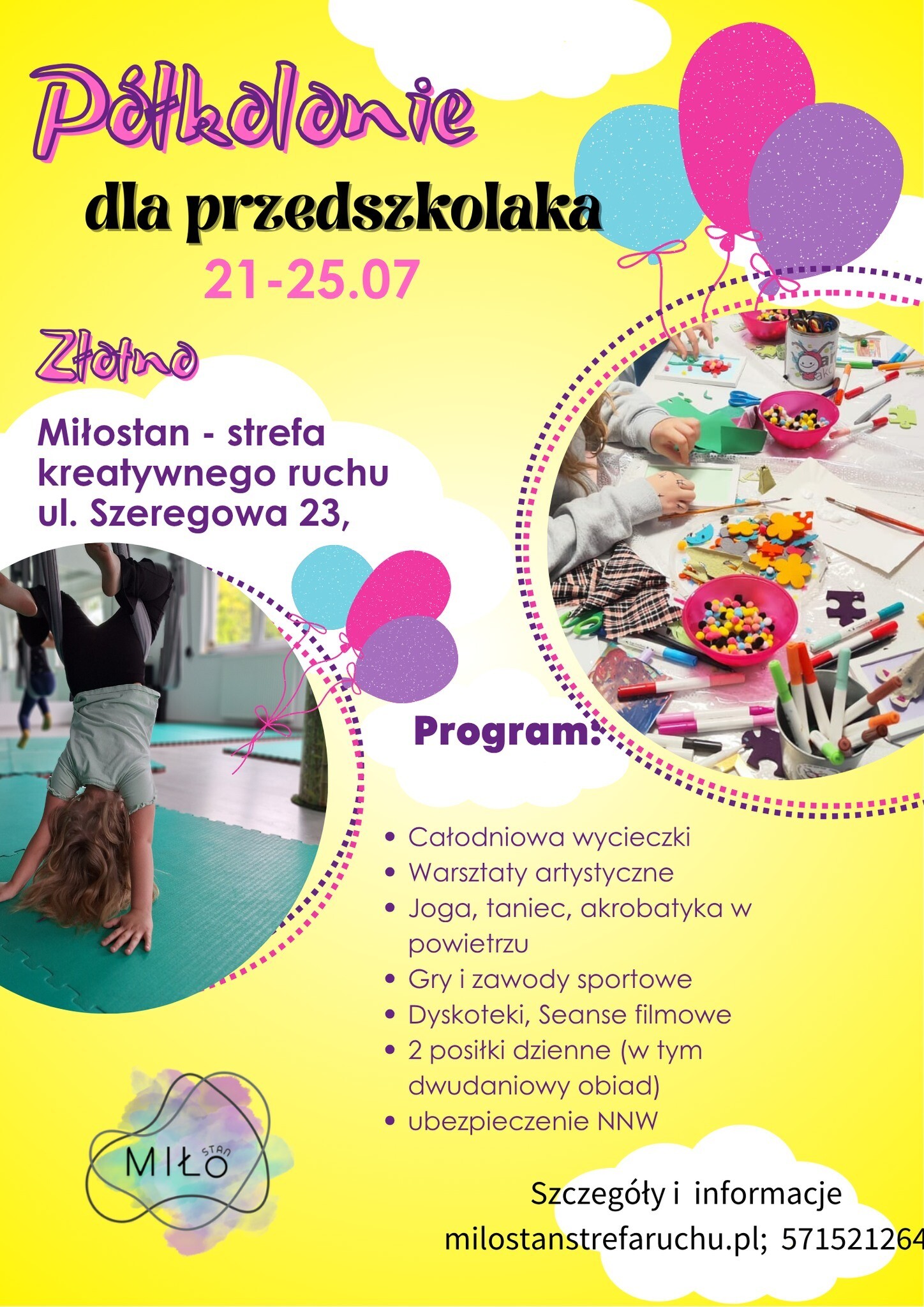 Szczegółowy harmonogram półkolonii dla Przedszkolaków